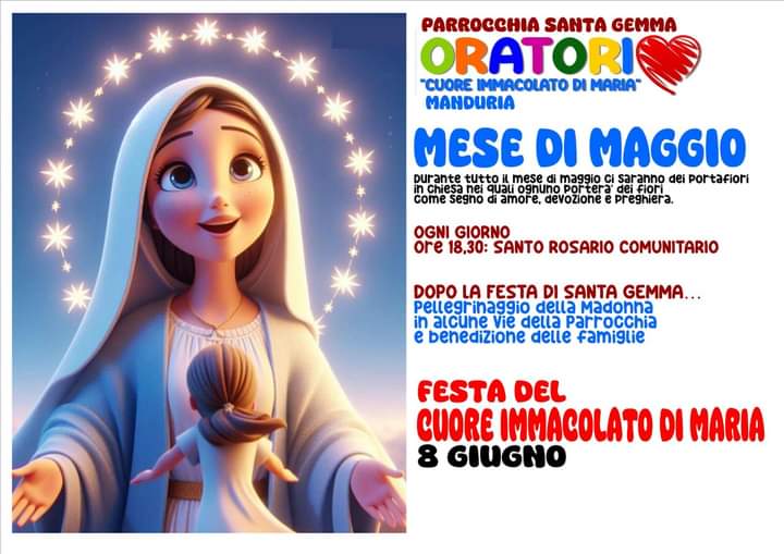 L’8 giugno, infine, sarà celebrata la Festa del Cuore Immacolato di Maria.