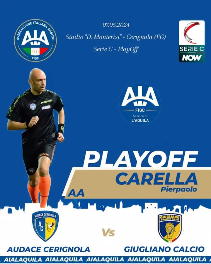 Pierpaolo Carella (AIA L’Aquila) designato come assistente dell’incontro fra Cerignola e Giugliano.