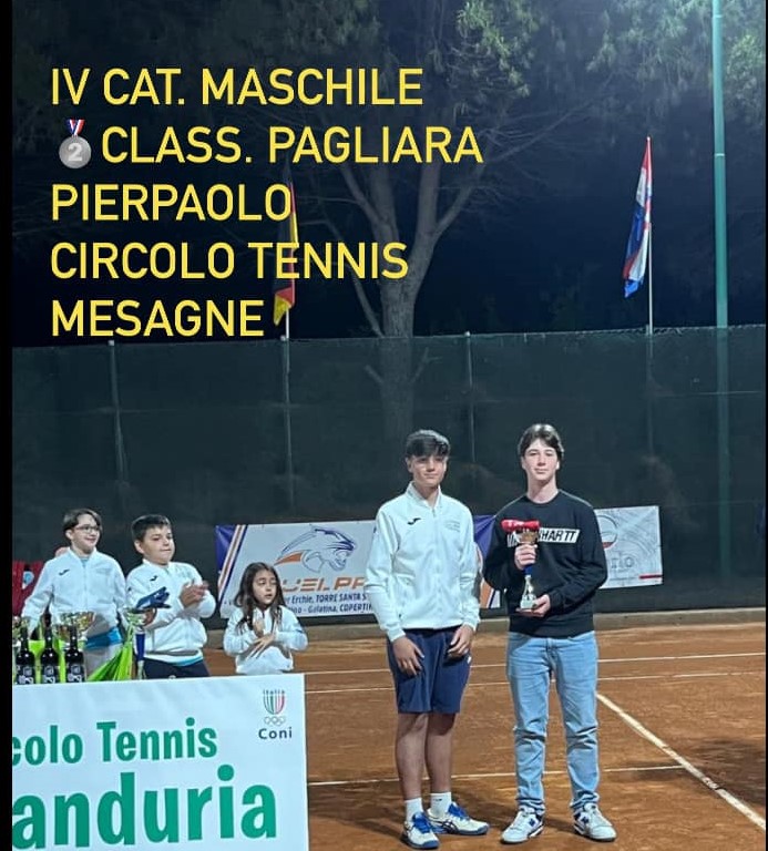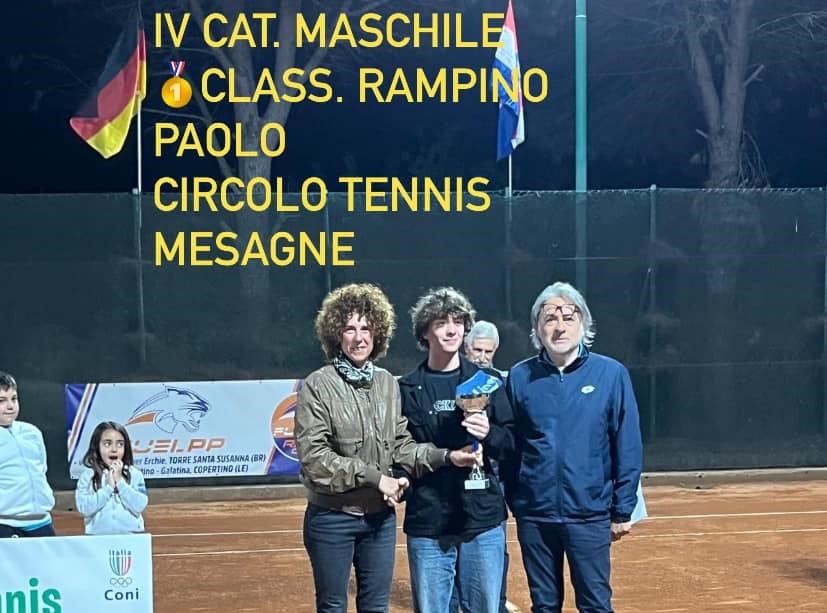 IV CATEGORIA: ancora un successo per il Circolo Tennis di Mesagne: Paolo Rampino ha battuto Pierpaolo Pagliara, anch’egli del Circolo Tennis di Mesagne.