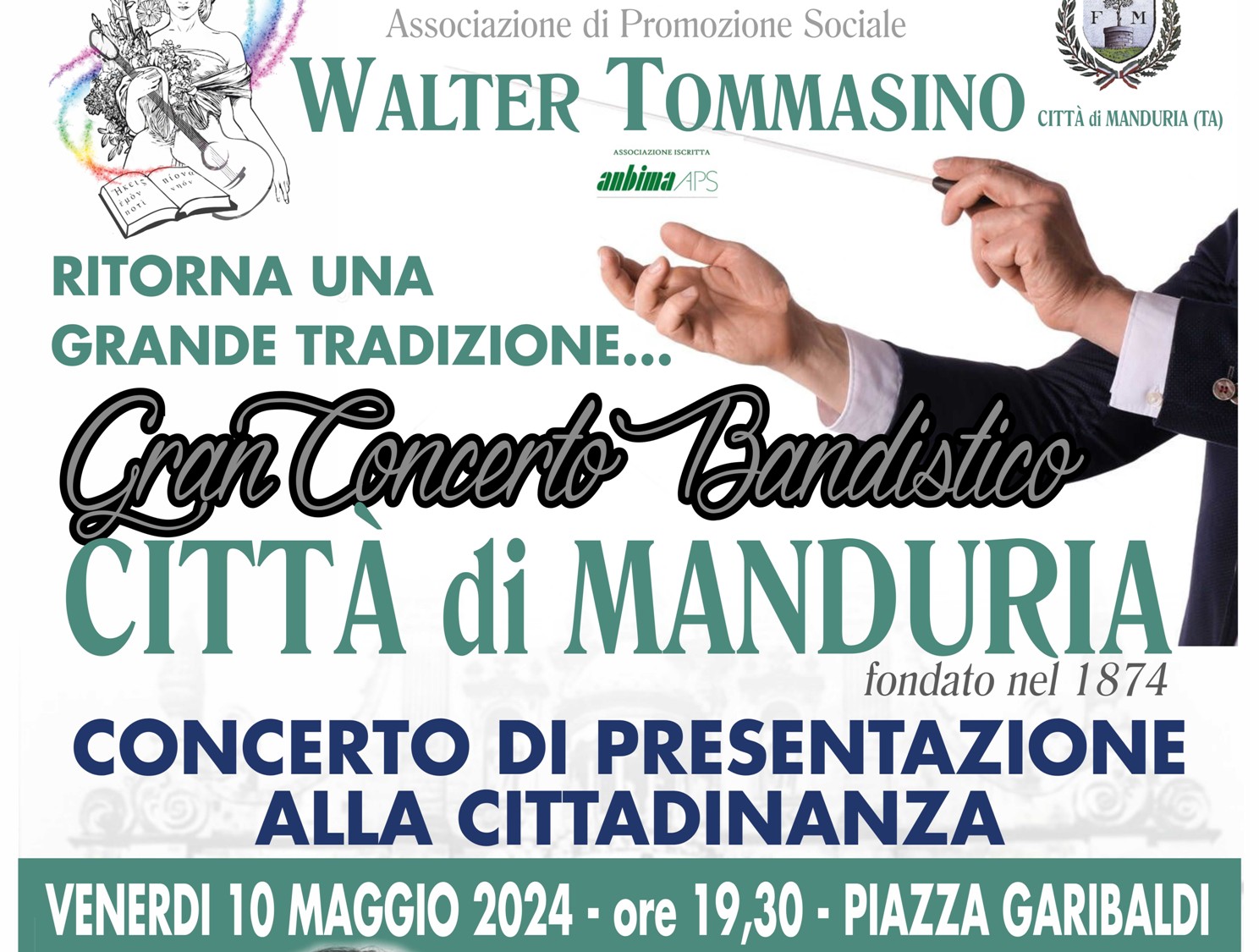 Artefice dell’ambizioso progetto di ricostituzione e nuovo sviluppo è l'associazione culturale manduriana “Walter Tommasino” (presieduta da Gregorio Digiacomo), a cui l'ente comunale ha ufficialmente affidato il titolo della blasonata orchestra di fiati e percussioni, fondata nel 1874 (seconda in Puglia per anzianità) e oggi associata ANBIMA (Associazione Nazionale delle Bande Italiane Musicali Autonome)