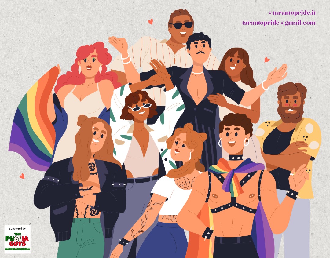 Ma non è solo Taranto a celebrare l’orgoglio: anche Manduria, Castellaneta (28/07), Martina Franca, Palagianello (27/07) ed altre piccole città della provincia ionica si uniranno alla celebrazione con i loro eventi Pride.