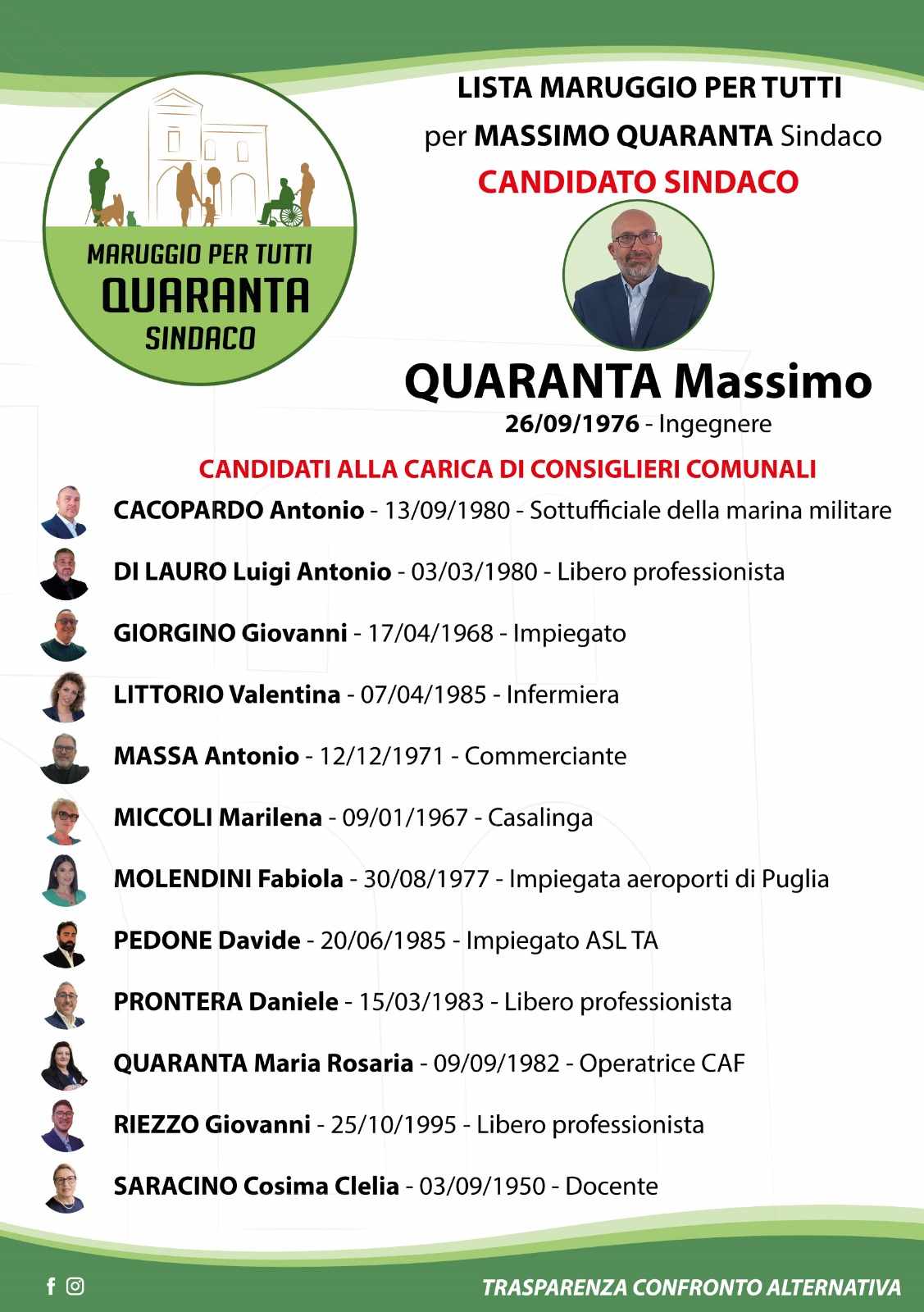 Comunali 2024, presentata la lista “Maruggio per Tutti – Quaranta sindaco”, che avrà in Massimo Quaranta il candidato alla carica di sindaco.