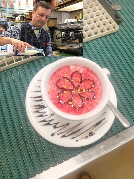 Una delizia alla vista, al palato e al gusto, preparato sapientemente e professionalmente dal barman Giovanni utilizzando una macchina e un macinino professionale di nazionalità italiana, una miscela speciale composta da varietà (arabica – robusta) ottenuto grazie ad una torrefazione di Cisternino, del latte fresco intero dai pascoli della Murgia dei trulli (grassi3,3%-4%, proteine 3,2% - 3,3%) conservandolo a non più di 5 gradi centigradi.