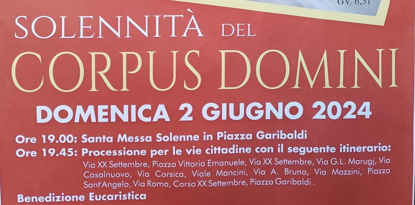 Ecce le celebrazioni religiose programmate per domenica 2 giugno, ovvero nella giornata della solennità del Corpus Domini: le celebrazioni religiose.