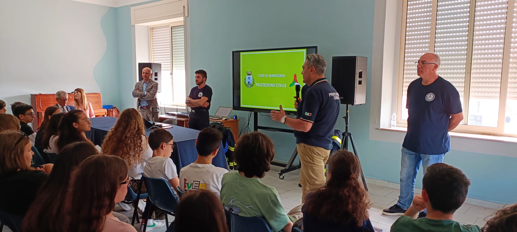 Ieri mattina, nell’aula magna dell’I.C. Marugj – Frank, si è svolto il primo incontro facente parte del progetto che rientra nel più ampio piano di informazione, sensibilizzazione e formazione ambientale, della sicurezza e della legalità, voluto dall’Amministrazione comunale, in collaborazione con l’Ufficio Emergenze della Protezione Civile Città di Manduria. rappresentata dal funzionario, Elio Errico.