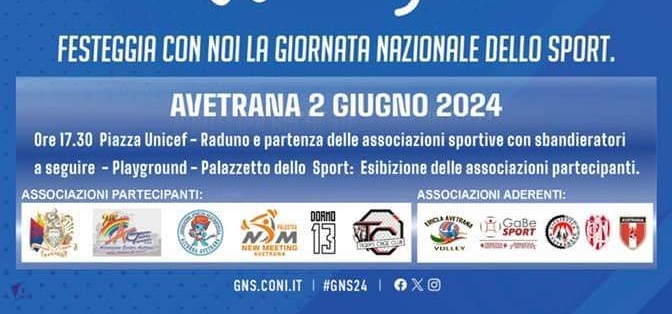 Come ogni anno la prima domenica di giugno, in tutta Italia, il CONI promuove tale iniziativa finalizzata alla promozione di tutte le discipline sportive. Anche quest'anno il comune di Avetrana aderisce con impegno e partecipazione coinvolgendo tutta la cittadinanza.