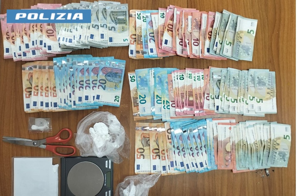 La perquisizione dell’appartamento ha permesso di recuperare all’interno di un mobile della cucina un involucro di cellophane con all’interno circa 20 grammi di cocaina e 2.500 euro in banconote di vario taglio