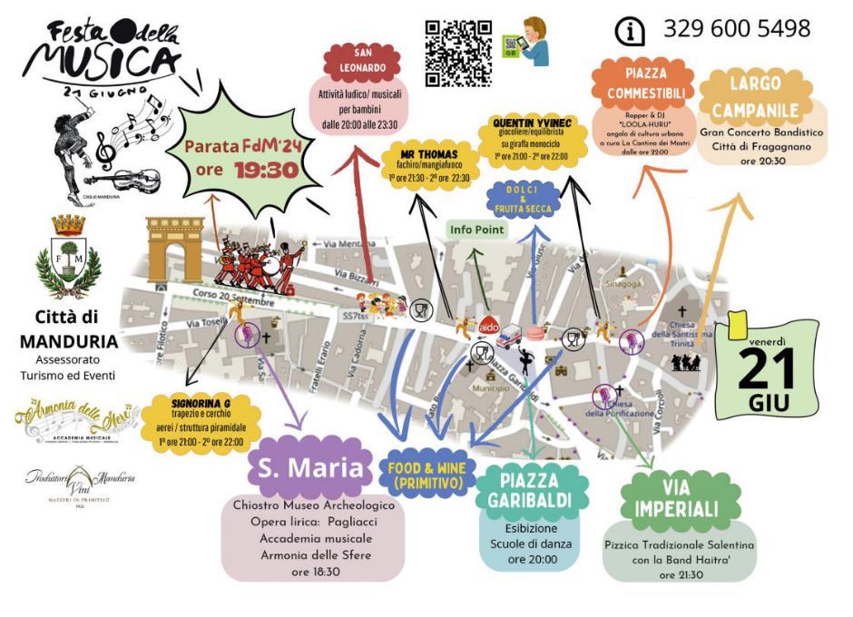La Festa della Musica Europea, giunta a Manduria alla sua 3ª edizione, ritorna venerdì 21 giugno con un carico di colori, emozioni e allegria, pronta a contagiare l'intera comunità!
