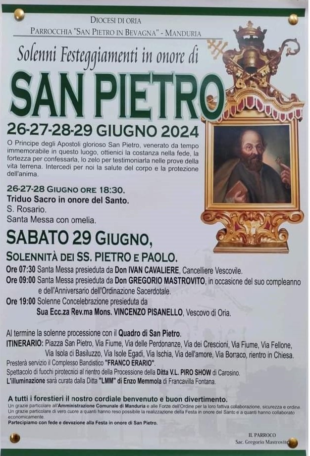 Festeggiamenti in onore dei santi Pietro e Paolo: ecco il programma.