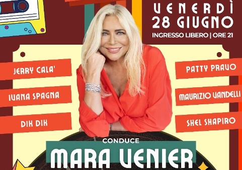 “I nostri migliori anni!”, ideato e promosso dalla LDM Services & Communication di Laura De Mola in collaborazione con la Catino&Giglio di Roma. La serata, che sarà condotta dalla nota presentatrice televisiva Mara Venier, ripercorrerà - come già accaduto durante la prima edizione - alcuni storici momenti della musica italiana dagli anni ’60 agli anni ’80, e vedrà esibirsi sul palco artisti come Patty Pravo, Ivana Spagna, Maurizio Vandelli, Shel Shapiro e i Did Dik. Ad aprire e chiudere l’evento ci penserà il mitico Jerry Calà che già lo scorso anno ha infiammato piazza Ciaia con i suoi più noti successi musicali.