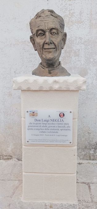 Il presidente ha poi ricordato che l’effigie di don Luigi campeggia su Manduria, quasi ad indicare il 4 punti cardinali che hanno come centro la chiesa Madre: a nord il busto delle Opere Parrocchiali, ad est il monumento in piazza Neglia, a sud l’ex “Villaggio del Fanciullo” ed a ovest la tomba altare presso il cimitero comunale.