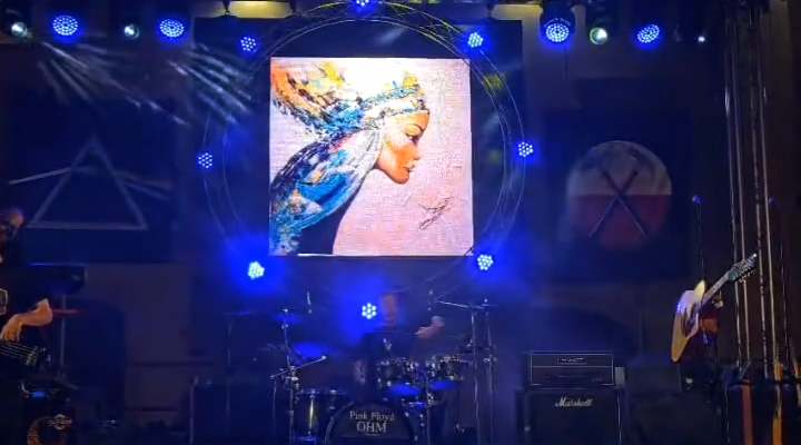 Un connubio speciale, che ha coinvolto ed emozionato il folto pubblico presente. Da un lato le note degli immortali brani dei Pink Floyd, eseguiti dalla cover band OHM; dall’altra, sul maxi schermo montato sul palco, uno dopo l’altro i capolavori artistici creati dalla sensibilità, dalla professionalità e dall’estro dell’artista manduriana Giusy Leone.