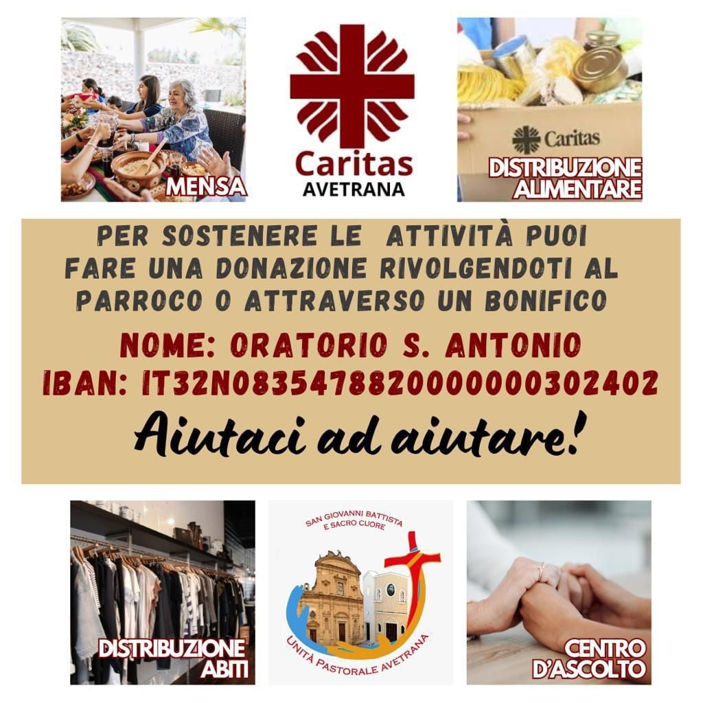 Da più di un anno l’Unità Pastorale di Avetrana ha avviato un processo di “ri-fondazione” della Caritas, ormai non più solo parrocchiale ma cittadina.