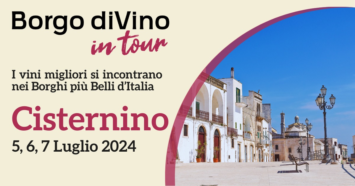 Sarà Cisternino, uno dei “paesi bianchi” più affascinanti in provincia di Brindisi, a ospitare la decima tappa di Borgo diVino in tour edizione 2024, la rassegna enogastronomica di eccellenza organizzata da Valica S.p.a - MarTech company, leader di settore nel marketing tecnologico con un focus specifico su turismo e enogastronomia - in collaborazione con il Consorzio Ecce Italia e promossa dall’associazione “I Borghi più belli d’Italia”, con il supporto della Camera di Commercio Brindisi-Taranto e con il patrocinio dell’Associazione Nazionale di Città del Vino.