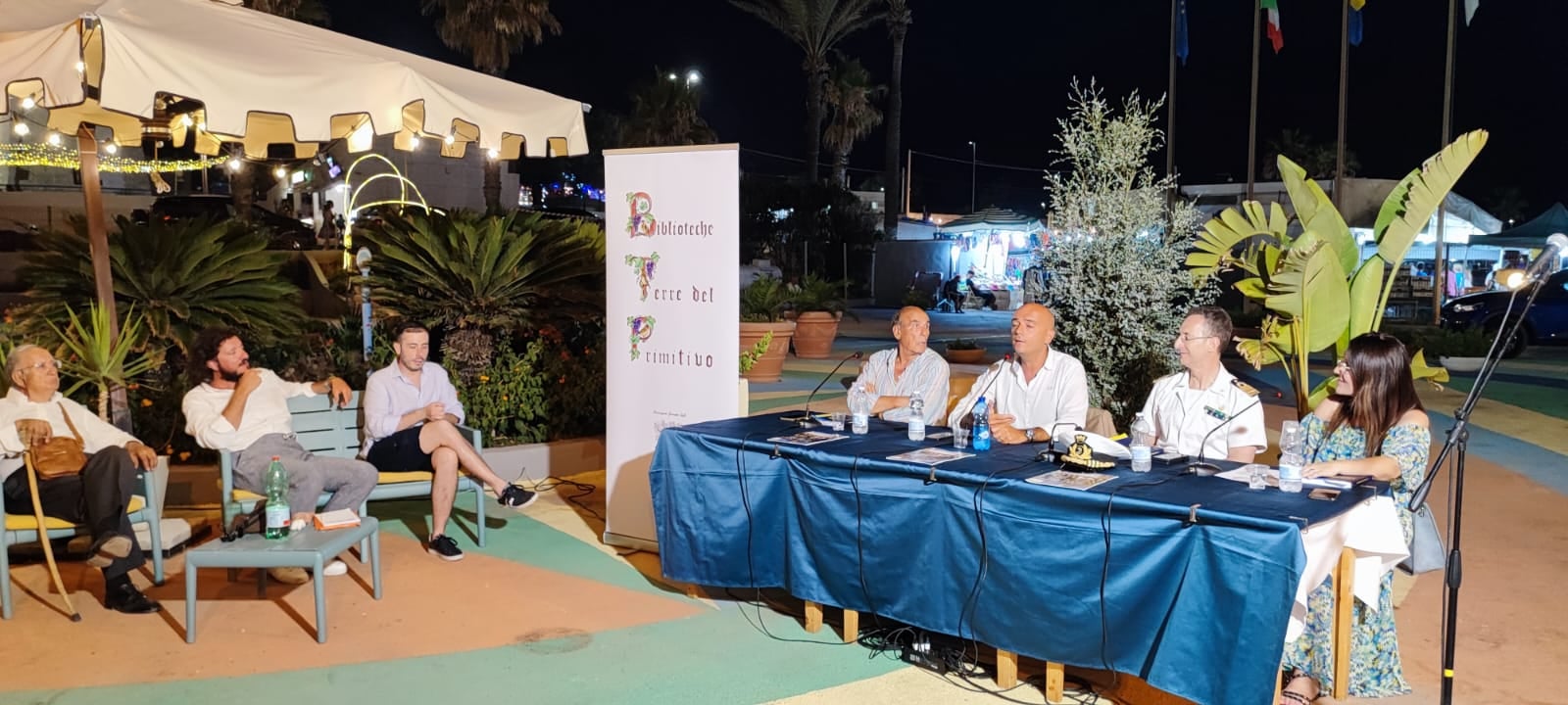 Hanno collaborato alla realizzazione della serata l’associazione Biblioteche delle Terre del Primitivo di Manduria nella persona del presidente Fulvio Filo Schiavoni, l’Amministrazione comunale di Maruggio, la consigliera con delega al Turismo Tiziana Destratis, il Comandante della Capitaneria del Porto di Campomarino Cosimo Di Napoli, la Lega Navale Nazionale - sezione di Campomarino di Maruggio- nella persona del presidente Antonio Gigante, Rocco e Francesco Cavallo per la gentile ospitalità presso il piazzale antistante il ristorante Torre Moline e l’associazione Maruggio e Dintorni Story.