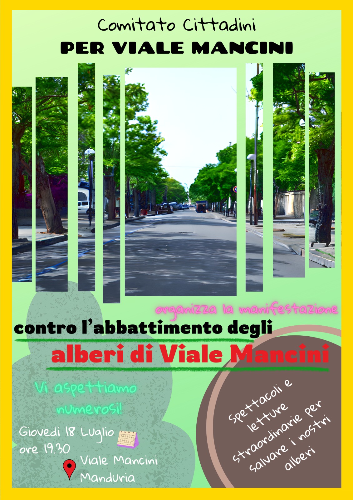 Giovedì 18 luglio, dalle 19:30, in viale Mancini avrà luogo una manifestazione per dire NO all'abbattimento degli alberi.