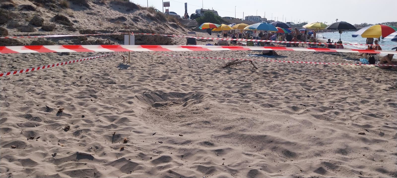 Delimitata l’area e predisposto un corridoio con sistemi ombreggianti sino al bagnasciuga per rendere più agevole il percorso in acqua delle tartarughe appena venute alla luce