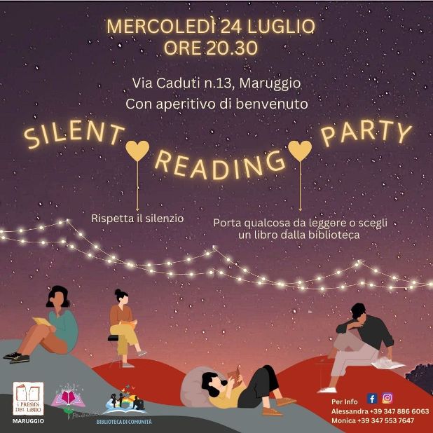 Approfittando della bella stagione e del silenzio del giardino i lettori del Presidio del libro di Maruggio “Gruppo di Lettura Più di un Libro” accoglieranno i loro amici e tutti coloro che vorranno partecipare a trascorrere una serata di letture silenziose ma in compagnia, al termine delle quali ci si intratterrà tutti insieme per un confronto sulle letture, sulle sensazioni scaturite dalla quiete, per lo scambio di consigli di lettura e per degustare cibi al buffet.