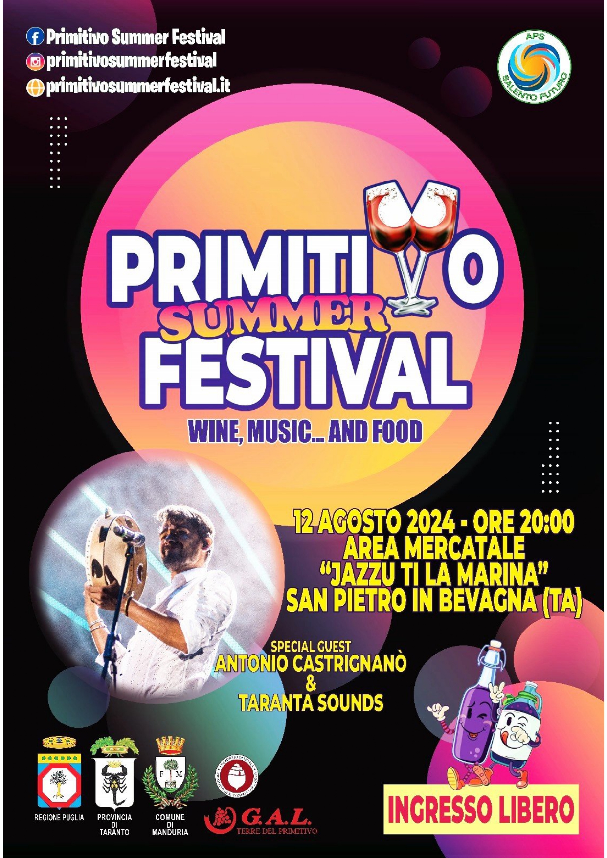 Dopo la prima edizione, che ha visto ballare e divertire tantissima gente, a pochi giorni dal Ferragosto, nella località balneare San Pietro in Bevagna ci sarà uno degli eventi più attesi dell’estate: la seconda edizione del “Primitivo Summer Festival”, con il concerto del grande maestro Antonio Castrignanò e del gruppo Taranta Sounds.