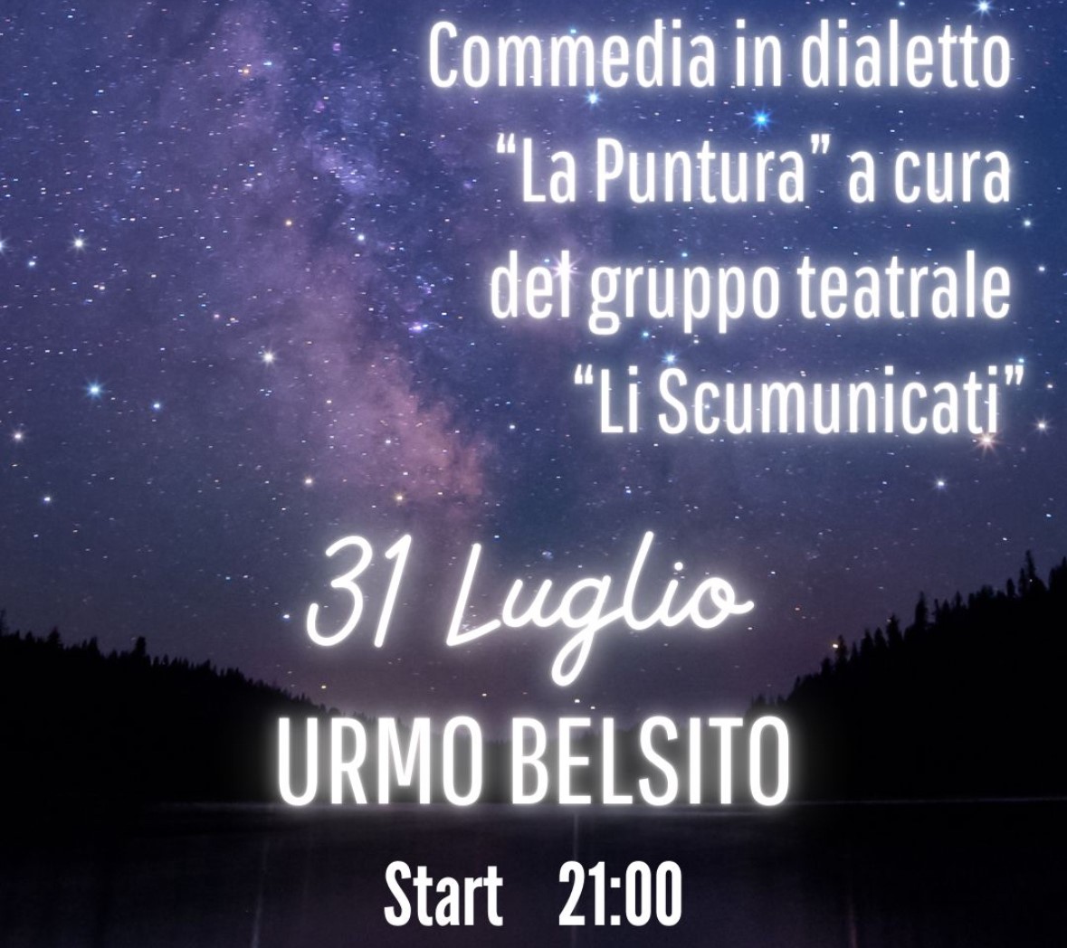 Si svolgerà mercoledì 31 luglio, alle ore 21, a Urmo Belsito, frazione di Avetrana, una manifestazione tutta da scoprire e divertirsi con gli Haitra (pizzica salentina) e il gruppo teatrale “Li scomunicati” che presenteranno un loro lavoro “La Puntura”.