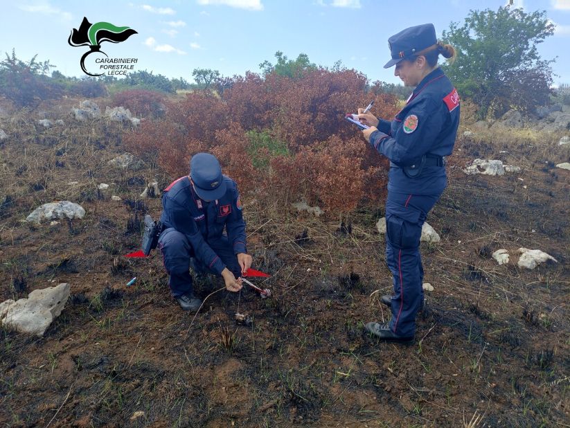 Dopo accertamenti effettuati sul campo con l’ausilio delle immagini registrate da telecamere, i Carabinieri Forestali del Nucleo di Gallipoli sono pervenuti all’identificazione del presunto autore dell’incendio sviluppatosi il 27 luglio scorso in contrada Bernardini in agro di Nardò, deferendolo, in stato di libertà, alla Procura della Repubblica di Lecce.
