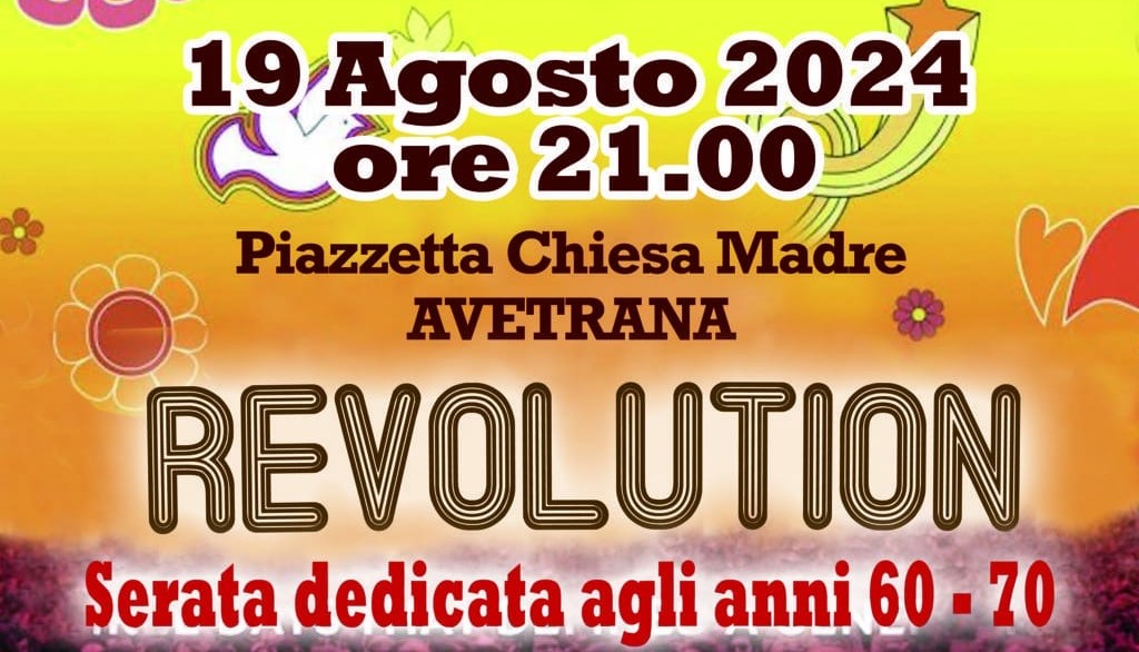 Revolution torna quindi lunedì 19 agosto presso la piazzetta chiesa Madre ad Avetrana, a partire dalle ore 21, nella rassegna Griot, giunta alla 23’ edizione una serata organizzata per volontà dell’Amministrazione comunale e dalla Pro Loco.