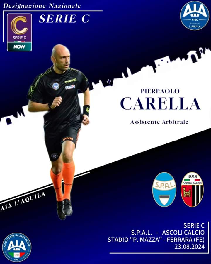 Pierpaolo Carella (AIA L’Aquila) designato come assistente per l’incontro fra Spal e Ascoli.
