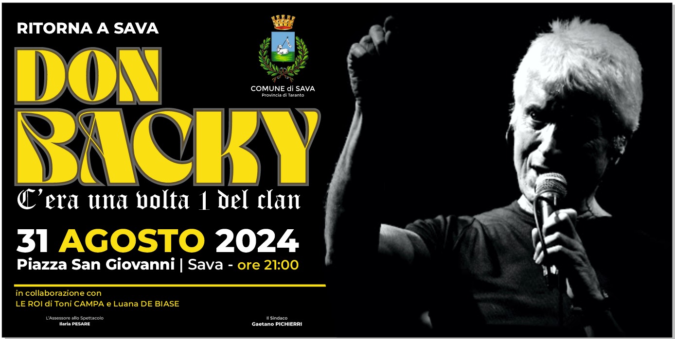 Attore in coppia con Gian Maria Volonté nei film “I 7 fratelli Cervi” e “Banditi a Milano” oltre a “Satyricon” di Polidoro con Tognazzi, Don Backy è sicuramente un artista poliedrico, a cui in tanti si sono poi ispirati. In collaborazione con Toni Campa e Luciana De Biase, l’appuntamento è stato promosso dal Comune di Sava.