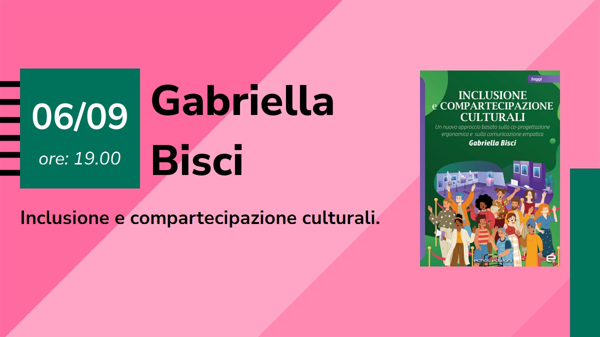 Ospite la professoressa Gabriella Bisci, ingegnera biomedica, che parlerà ai presenti del suo ultimo libro "Inclusione e compartecipazione culturali", trattando temi interessantissimi quali inclusione, patrimonio culturale e interazioni umane.