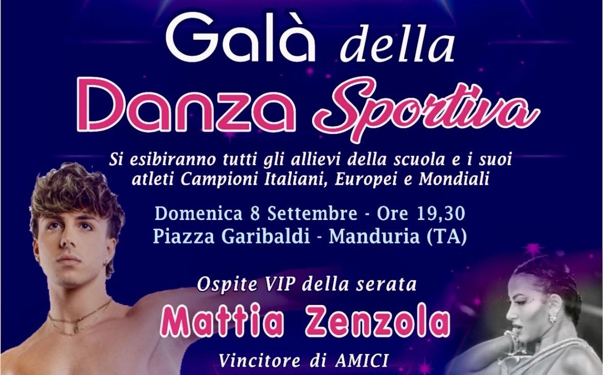 Si esibiranno la pluricampionessa del mondo Lucia Dimilito e tutti gli altri allievi della scuola di danza sportiva manduriana, che hanno fatto incetta di titoli a tutti i livelli nella scorsa stagione agonistica.
