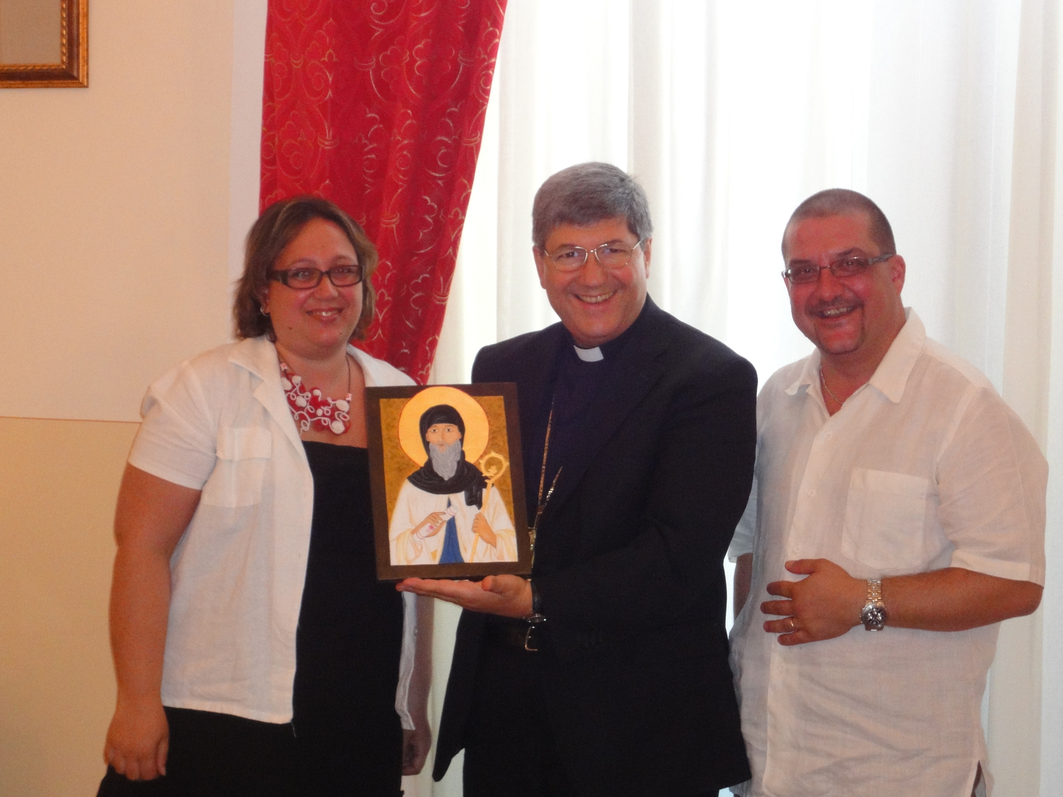 Al termine dell’incontro l’associazione ha fatto omaggio a mons. Pisanello di una icona sacra raffigurante San Barsanofio, patrono di Oria e della Diocesi, opera della prof.ssa Giusy Baldari, responsabile dei laboratori artistici di Karibuni.
