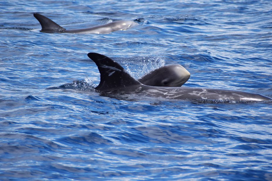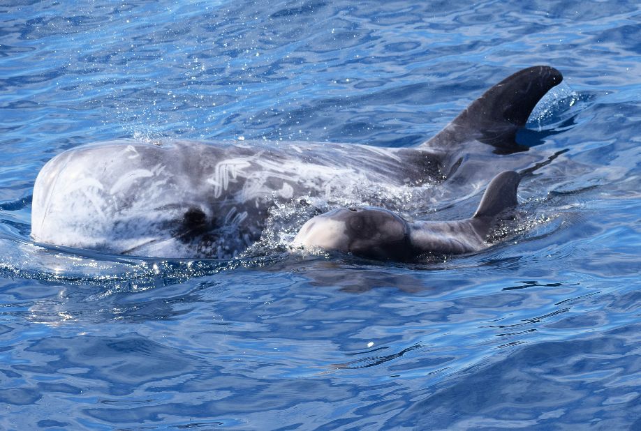Tra gli individui osservati quest’anno ci sono anche Alessandro e Mario, due giovani grampi maschi individuati per la prima volta nel 2018, quando, appena nati, nuotavano al fianco delle loro mamme, Dalmata e Surf.