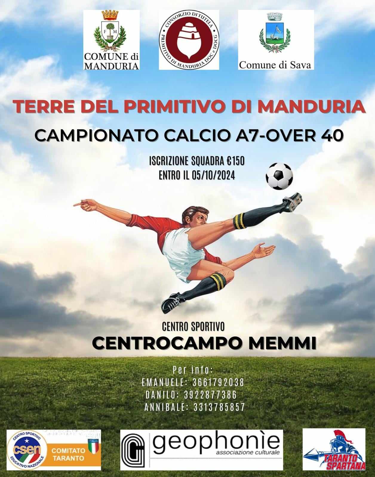Il nuovo campionato avrà battesimo il 16 ottobre, con il patrocinio dei Comuni di Manduria e di Sava e con il consenso all’utilizzo di nome e logo del Consorzio di Tutela del Primitivo di Manduria a cui il nuovo evento sportivo Over 40 dedica nome e location.
