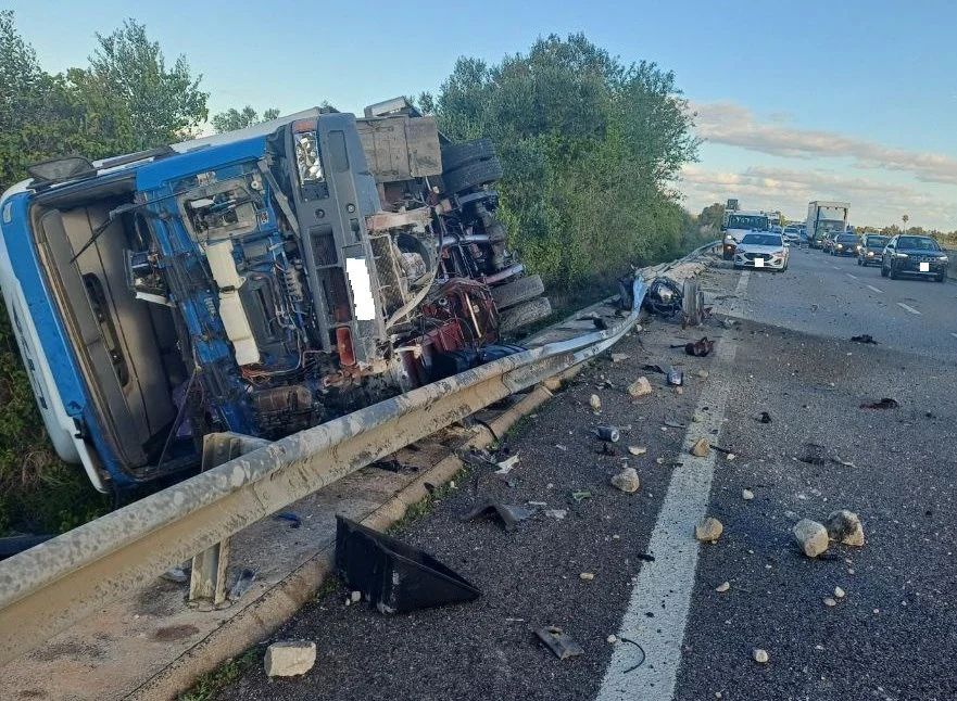 Incidente stamani sulla Brindisi-Lecce: un Tir si è ribaltato all’altezza dello svincolo Squinzano-Trepuzzi.
