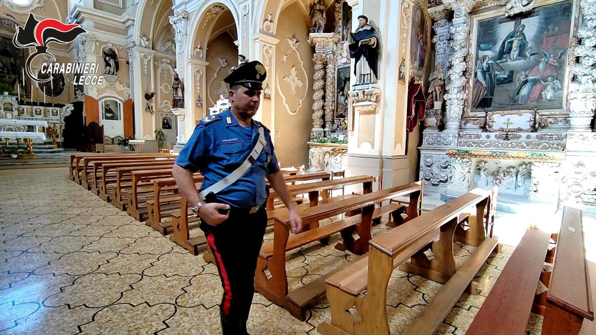 Secondo quanto ricostruito, l’uomo si sarebbe reso responsabile di ben otto furti, consumati tutti nel periodo compreso tra novembre 2023 e marzo 2024, in altrettante chiese ubicate nei piccoli centri cittadini di Castrignano del Capo, Miggiano, Salve, Tiggiano e Tricase. L’uomo si sarebbe intrufolato nelle chiese da cui avrebbe asportato complessivamente circa un migliaio di euro dall’interno degli offertori e dai candelieri votivi. In un’occasione, sarebbe riuscito addirittura a smantellare la cassetta di sicurezza per la raccolta delle offerte, incassata nella parete del santuario “Santa Maria di Leuca”, sito nel comune di Castrignano del Capo.