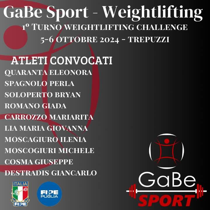 Oggi e domani gli atleti della GaBe Sport saranno impegnati, a Trepuzzi, nel primo turno del Challenge Weightlifting.