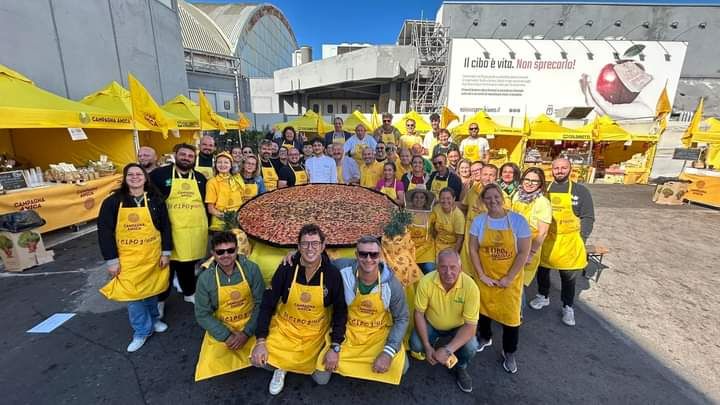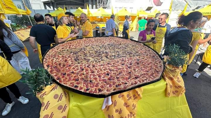 Il gigante del Made in Italy del territorio pugliese è stato fatto con 25 chili di farina, 5 litri di olio extravergine di oliva e 20 chili di pomodori, ingredienti rigorosamente prodotti in Puglia, un elogio alla Dieta Mediterranea per una maxi degustazione di bontà dedicata ai cittadini presenti nel quartiere fieristico, dove il cibo ha dominato la scena durante la 87ª Fiera del Levante con i testimonial della Dieta Mediterranea portati nel mercato di Campagna Amica dagli agricoltori custodi della biodiversità.