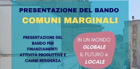 Si svolgerà giovedì 17 ottobre, alle ore 16.30, presso la sala consiliare del Comune di Avetrana la presentazione dell'avviso pubblico per la concessioni di contributi a valere sul fondo sostegno comuni marginali di cui art.2 comma 2 lett.B) e C) del dpcm 30 settembre 2021.