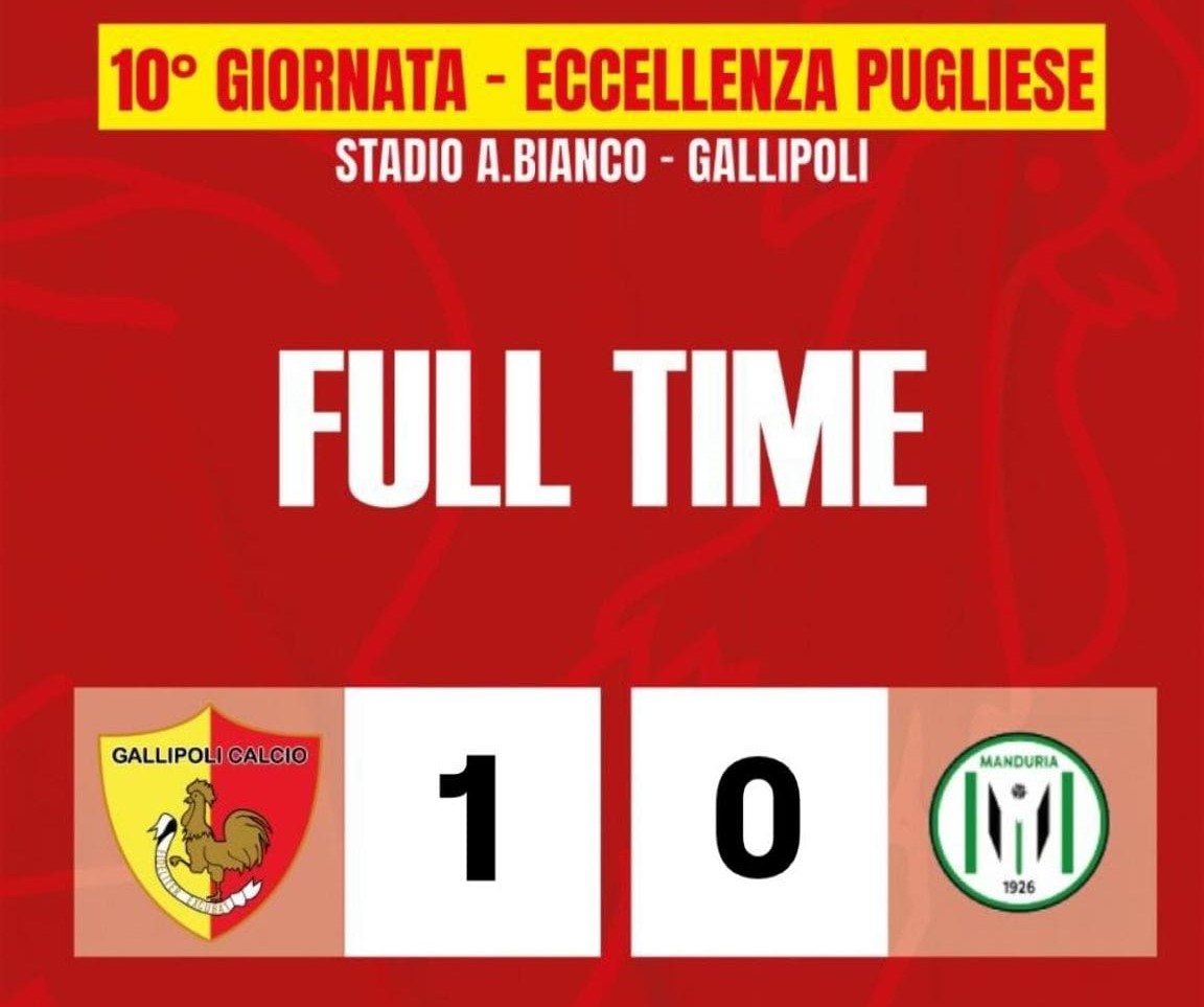 Manduria è beffato da un rigore dubbio nell’ultimo minuto di recupero. I biancoverdi non meritavano affatto la sconfitta. Questo il riassunto di un incontro il cui esito alla pari sarebbe stato certamente più giusto. Purtroppo, il calcio è anche fatto di questi imprevisti... Nel frattempo, non bisogna perdere la lucidità e la speranza affinchè l’impegno del tecnico Marsili, possa dare buoni frutti. Per il momento il Manduria deve lottare e far di tutto per tirarsi fuori dalle sabbie mobili del fondo classifica e una opportunità la potrà avere giovedì 24 ottobre, nell’undicesima di campionato al Dimitri contro lo Spinazzola, dove necessita il risultato pieno.