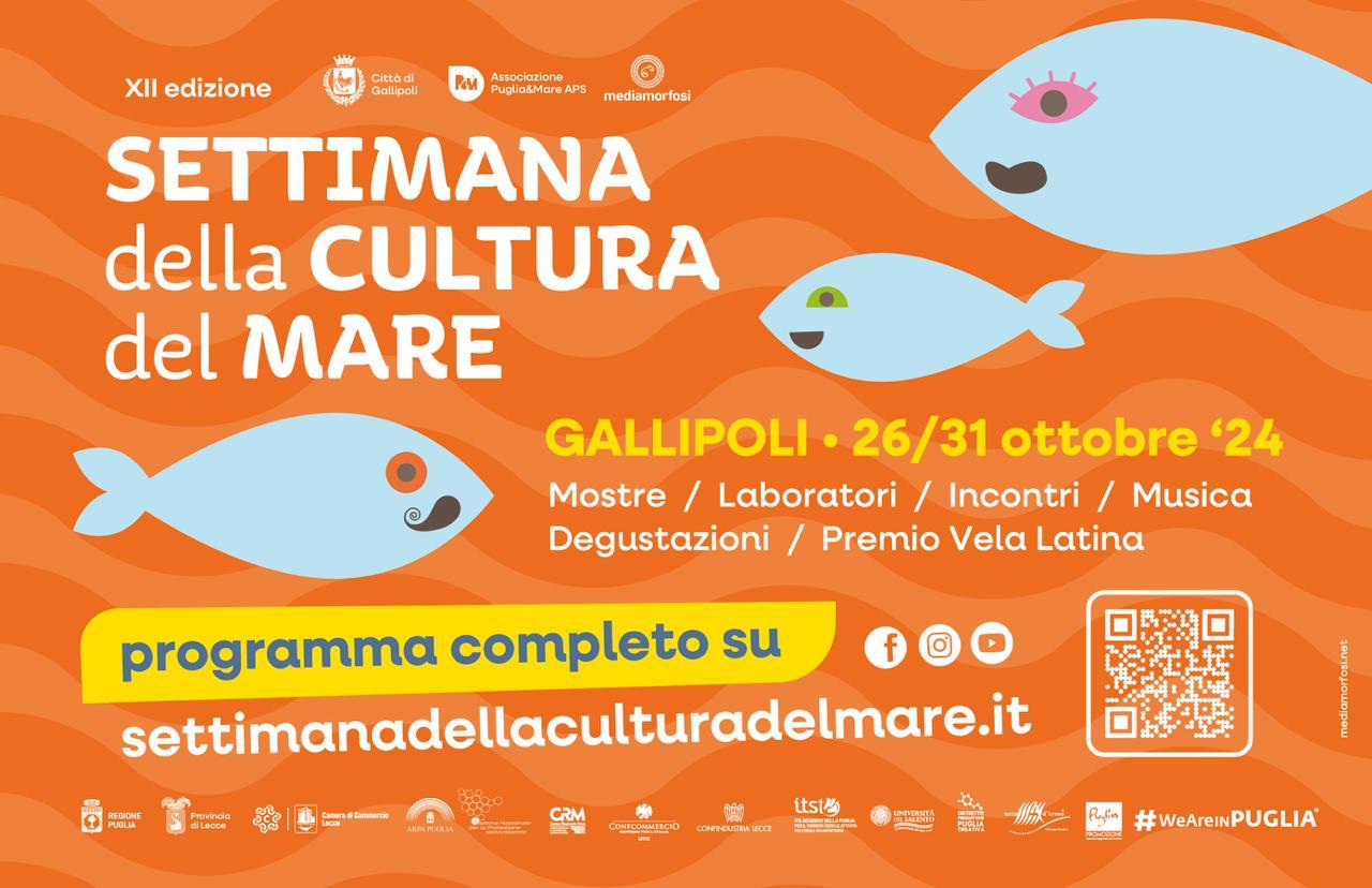 Anche quest’anno, ritorna la “Settimana della Cultura del Mare”, evento di marketing territoriale, turistico e culturale alla sua dodicesima edizione, organizzato dall’associazione Puglia&Mare con il determinante sostegno dell’Amministrazione Comunale di Gallipoli e in collaborazione con l’Università del Salento, che avrà luogo a Gallipoli dal 26 al 31 ottobre.