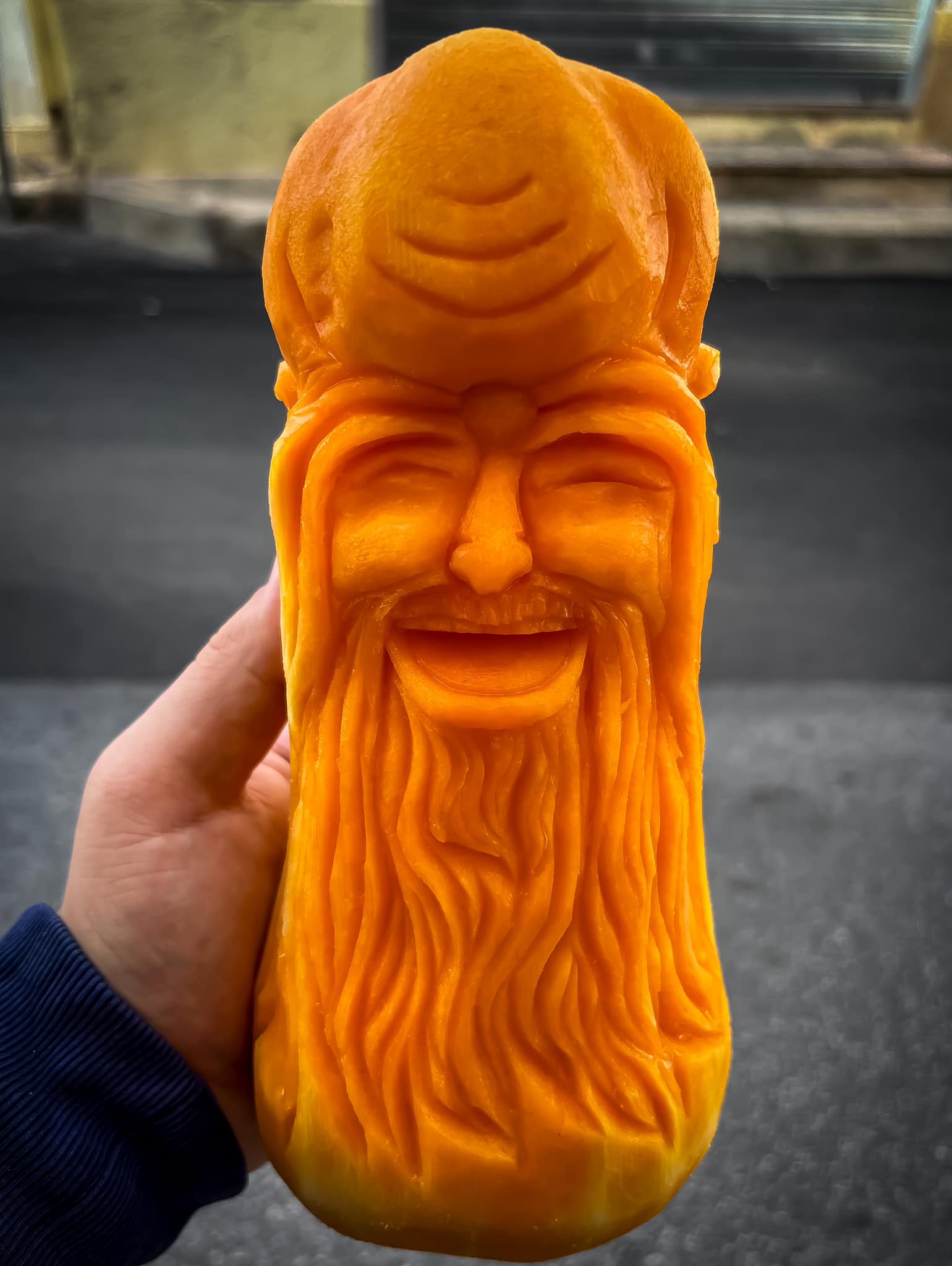 E’ imminente la ricorrenza di Halloween e l’artista maruggese Giuseppe Guida ci delizia con un’altra straordinaria scultura realizzata utilizzando la zucca. Raffigura un monaco Shàolín.