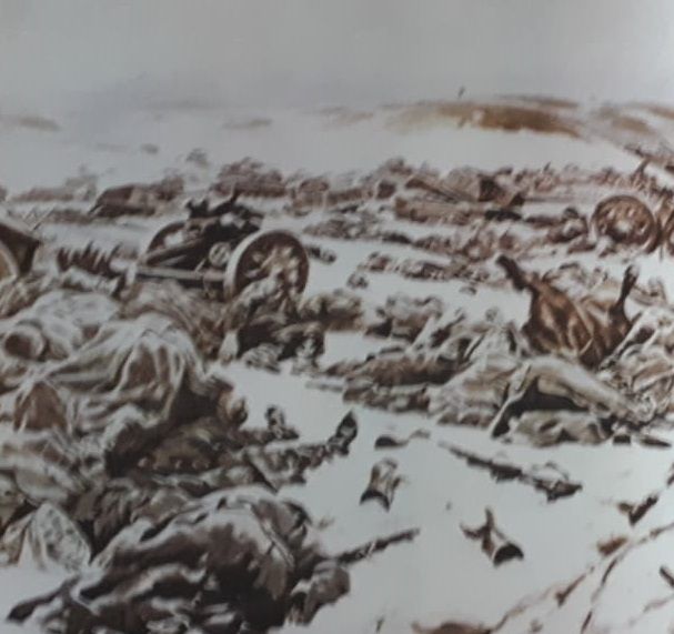 … Un’estenuante ritirata fu il prezzo della disfatta, evidente nelle lunghe colonne di soldati del Regio Esercito, affamati, disorientati e sfiniti, che vagavano a piedi nella neve, sfidando il freddo che penetrava nelle loro carni, pungente quanto l’odio che provavano verso il nemico…