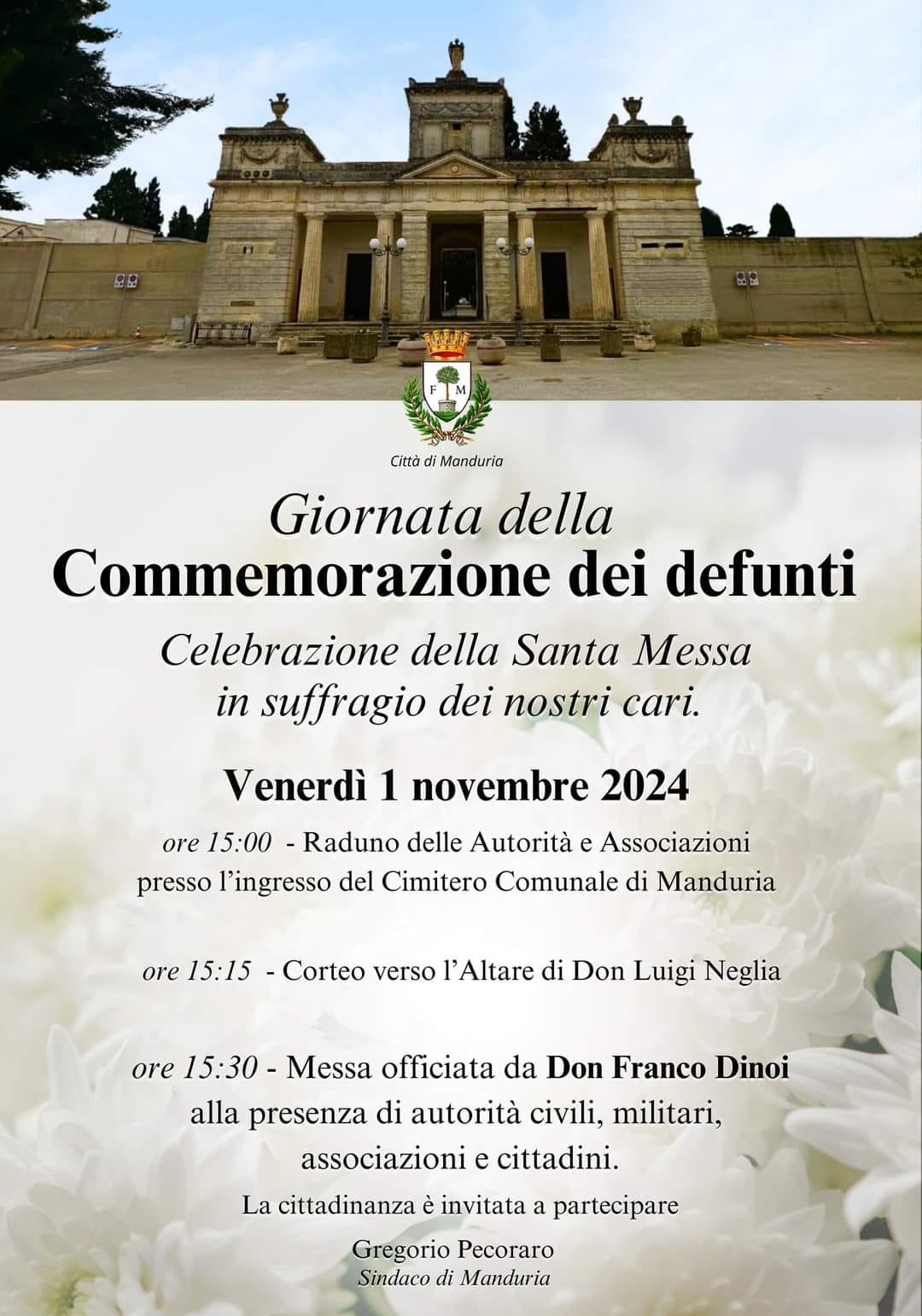 Domani, come ogni anno, anche a Manduria saranno commemorati i Defunti. Ecco il programma completo delle celebrazioni.