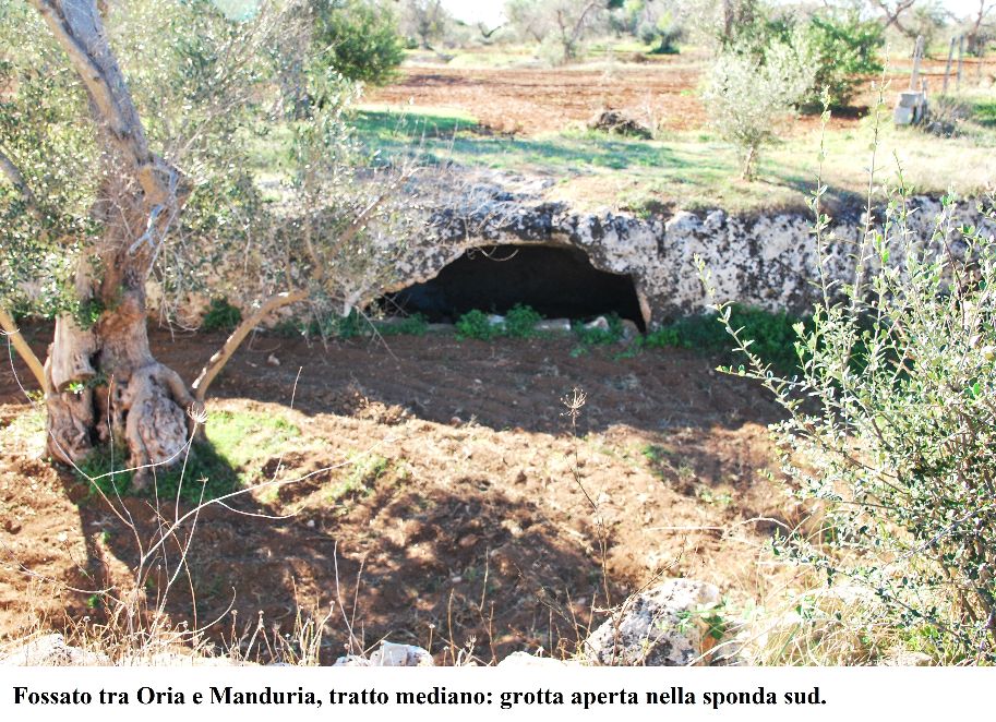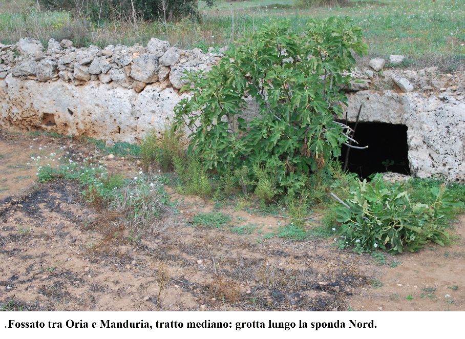 Oltre al vecchio campo di aviazione gravitante intorno a masseria Schiavoni (lungo la Manduria-Oria) ed alle specchie sparse nel contado (vedi Pparte I pubblicata in data 19/X/2024), il territorio a nord di Manduria si caratterizza per un lungo ed ampio fossato scavato nella roccia, che per circa tre chilometri si estende, in senso E-O, dalla provinciale per Oria (versante Masseria Schiavoni - vecchio aeroporto), fin verso la provinciale Manduria - S. Cosimo alla Macchia; siamo, di fatto, sul confine tra le due cittadine messapiche, ad una distanza intermedia di cinque chilometri, circa.