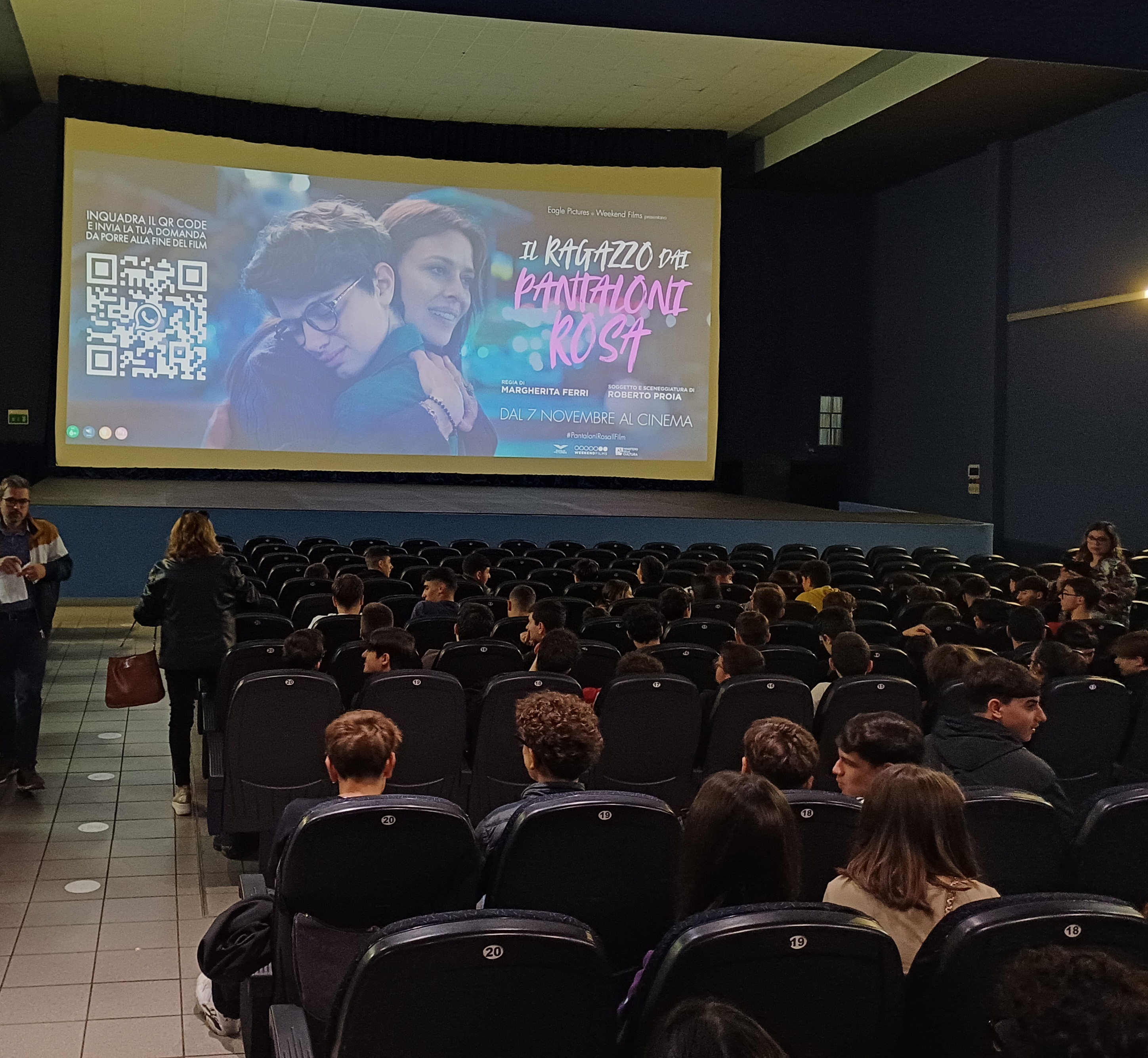 Ieri la partecipazione della scuola all’anteprima, su scala nazionale, della proiezione del film “Il ragazzo dai pantaloni rosa” e la diretta live con gli autori del film e con Teresa Manes, mamma di Andrea a cui la trama è ispirata