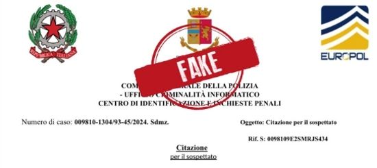 Tra le truffe online periodicamente ricorrenti c’è quella che riguarda false convocazioni giudiziarie che sfruttano il nome del Capo della Polizia, che nella versione che sta circolando in questi giorni in Rete viene indicato come direttore del Reparto cybercrime.