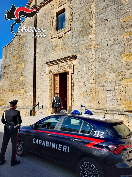 A quel punto, i Carabinieri non hanno perso tempo e si sono presentati presso l’abitazione del pregiudicato per procedere ad una perquisizione che ha consentito di ritrovare tutti gli oggetti che erano stati rubati in chiesa, probabilmente destinati ad essere venuti al miglior offerente. Al di là del valore economico degli oggetti sacri rubati, l’episodio aveva scosso la comunità dei fedeli perché il furto era stato compiuto ai danni di un luogo di culto che ha una storia millenaria e che nel paese rappresenta un’istituzione da tutelare. Tutta la refurtiva è stata quindi restituita al parroco don Luigi Lezzi, mentre per il 58enne è scattata la denuncia alla Procura della Repubblica di Lecce.