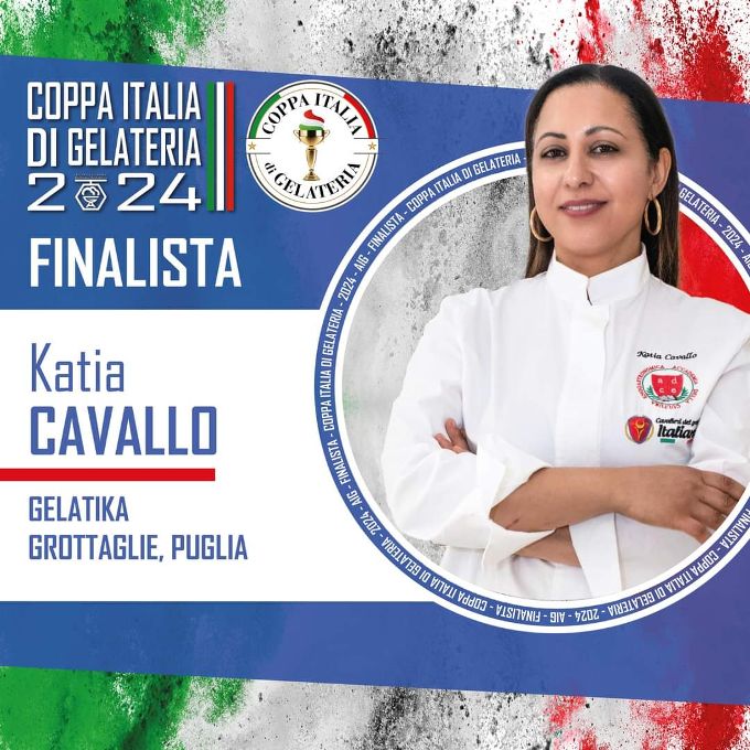 È tra i cinque finalisti pugliesi (tutti gelatieri della provincia di Taranto) ed è una delle tre donne italiane scelte per la fase conclusiva del campionato. Katia Cavallo è anche nota per aver lanciato il gelato “Bau”, per cani, un gusto senza latte e senza zuccheri con aggiunta di biscottini alla vaniglia per animali