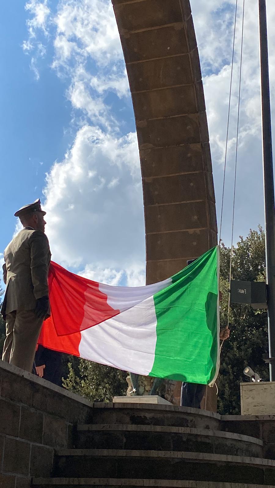 La cerimonia è proseguita alle ore 11 in piazza Vittorio Emanuele II con il rito dell’Alzabandiera, l’esecuzione dell’inno nazionale, la deposizione della corona d’alloro presso il monumento dei Caduti e la lettura dei messaggi istituzionali: quello del Capo di Stato Maggiore della Difesa, letto dal Sergente Maggiore Aiutante Giuseppe Mazza, quello del Ministro della Difesa letto dal Capitano di Corvetta Paola Plastina e quello del Presidente della Repubblica, letto dal sindaco Gregorio Pecoraro. In conclusione la preghiera del soldato letta dal Sergente Maggiore Aiutante Fabio Dinoi.