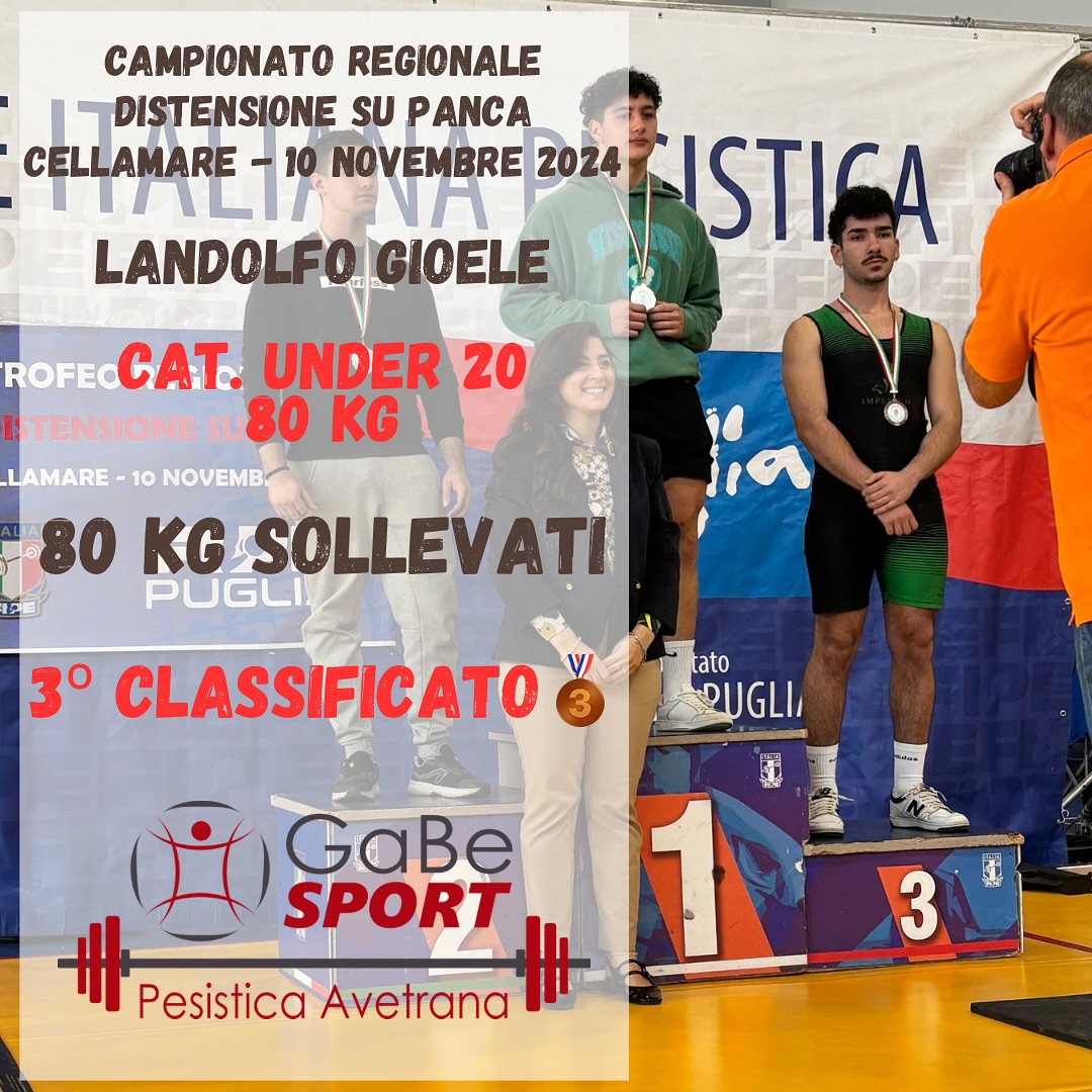 Medaglia di bronzo a Gioele Landolfo nella categoria under 20 sino a 80 kg: ha sollevato 80 kg